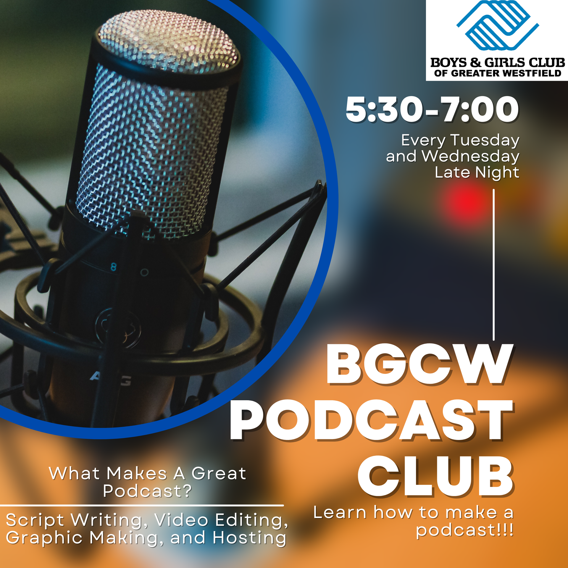 Learn MoreClub programs and activities are available for youth in grades 7-12 Monday - Friday from 2:30pm-5:30pm. Evening programming begins October 21st.